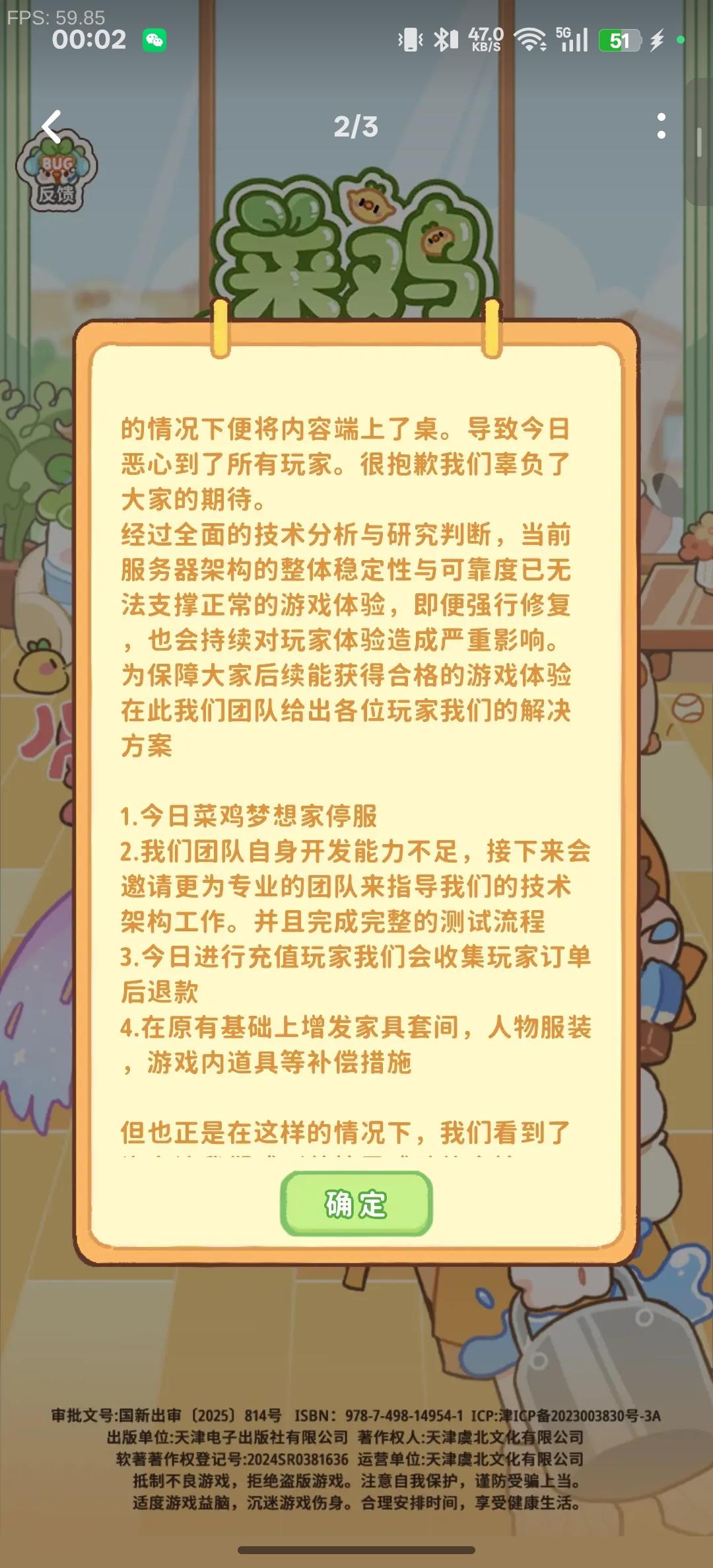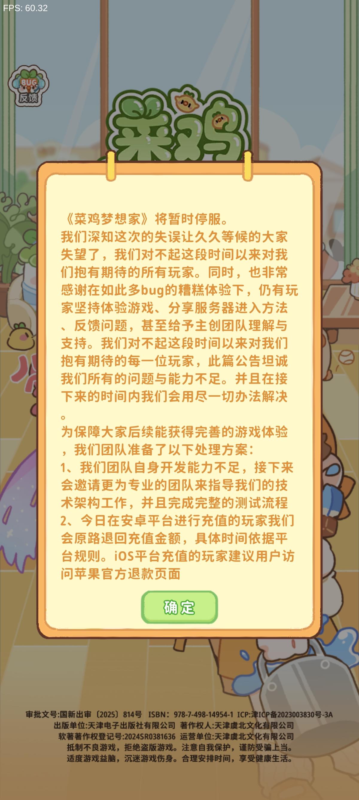 额。。今天开服炸了。让后又停服了。6,我准备从隔壁休闲时光跳槽了,结果搞这个。笑了。不会真骗个人信息的吧?啥时候可以再次开服?#菜鸡梦想家 #菜鸡梦想家装修 #菜鸡梦想家停服 #菜鸡梦想家反馈