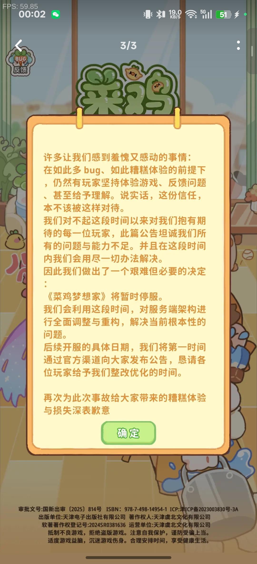 菜鸡加油!虽然只玩了一小会儿,但感觉挺好玩的,希望能早日处理好问题,期待再次开服!!!#菜鸡梦想家停服 #菜鸡梦想家