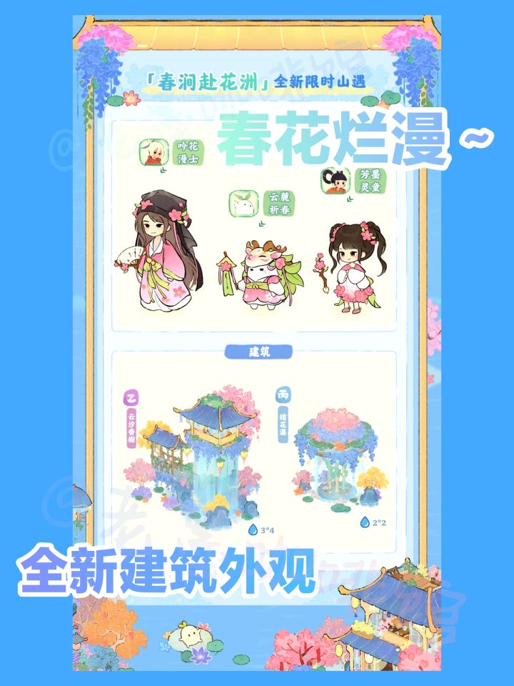 这次的主题太美了吧‼️‼️首页刷到移不开眼睛👀一个滑铲就入坑了🌸🌸游戏名称 🍑#桃源深处有人家 🍑二周年主题建筑、装扮、山遇将于3月6日更新~以莲花和瀑布为主题,如梦似幻,尽显古风魅力👍…「落花惊梦」限时UP建筑创物池开启 ⏩甲等建筑「千纱瞰春」即将上线。 可以更换垂瀑样式制造水上「生莲路」水岸「蕖岸」连廊「坠玉廊」发光建筑「夜璃花」⏩乙等建筑:浮香花坞、千萼水榭⏩丙等