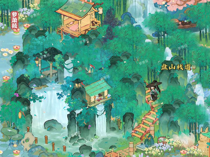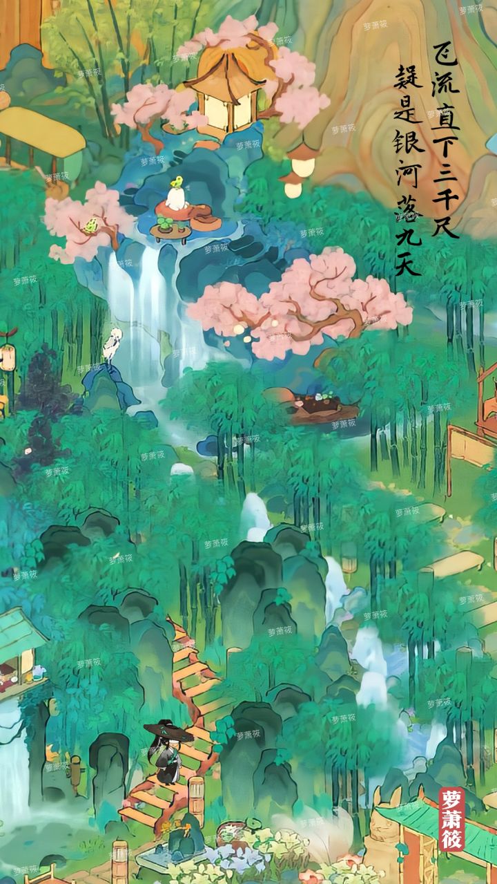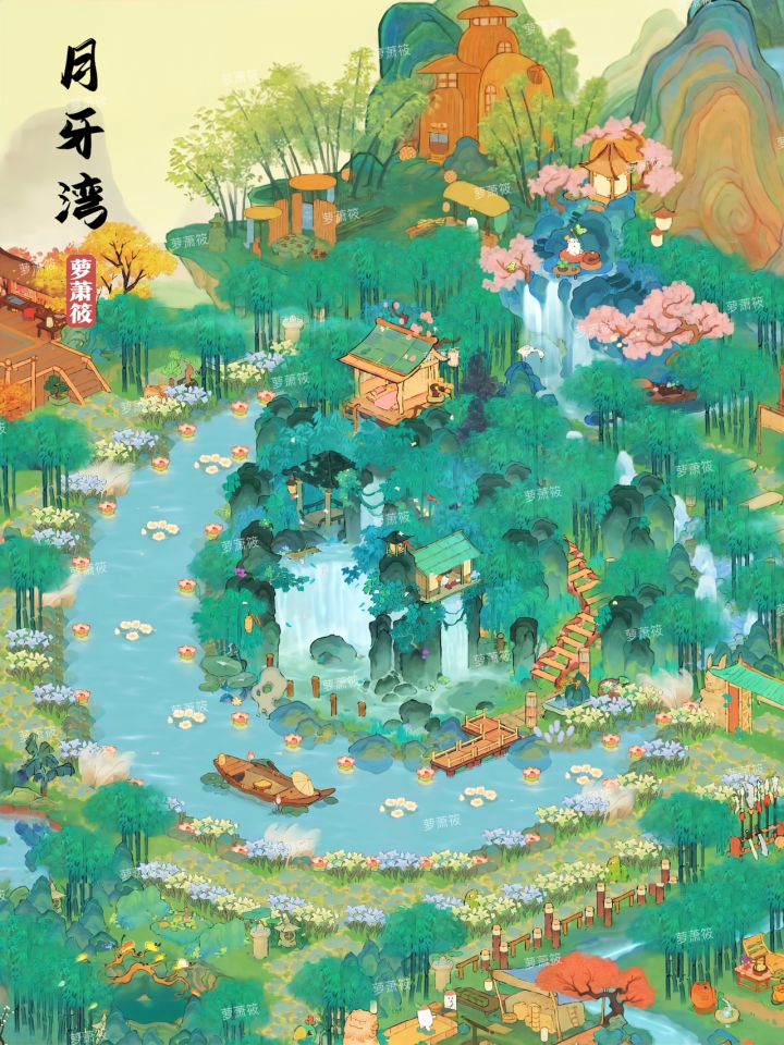 桃源丨「蓬莱仙岛 十 月牙湾」丨二岛墨踪侠隐布局•醉墨淋漓清竹烟,踏水无痕侠客隐。#桃源周年庆#桃源深处有人家装修#萝萝周年攻略#桃源深处有人家二岛布局#桃源深处有人家