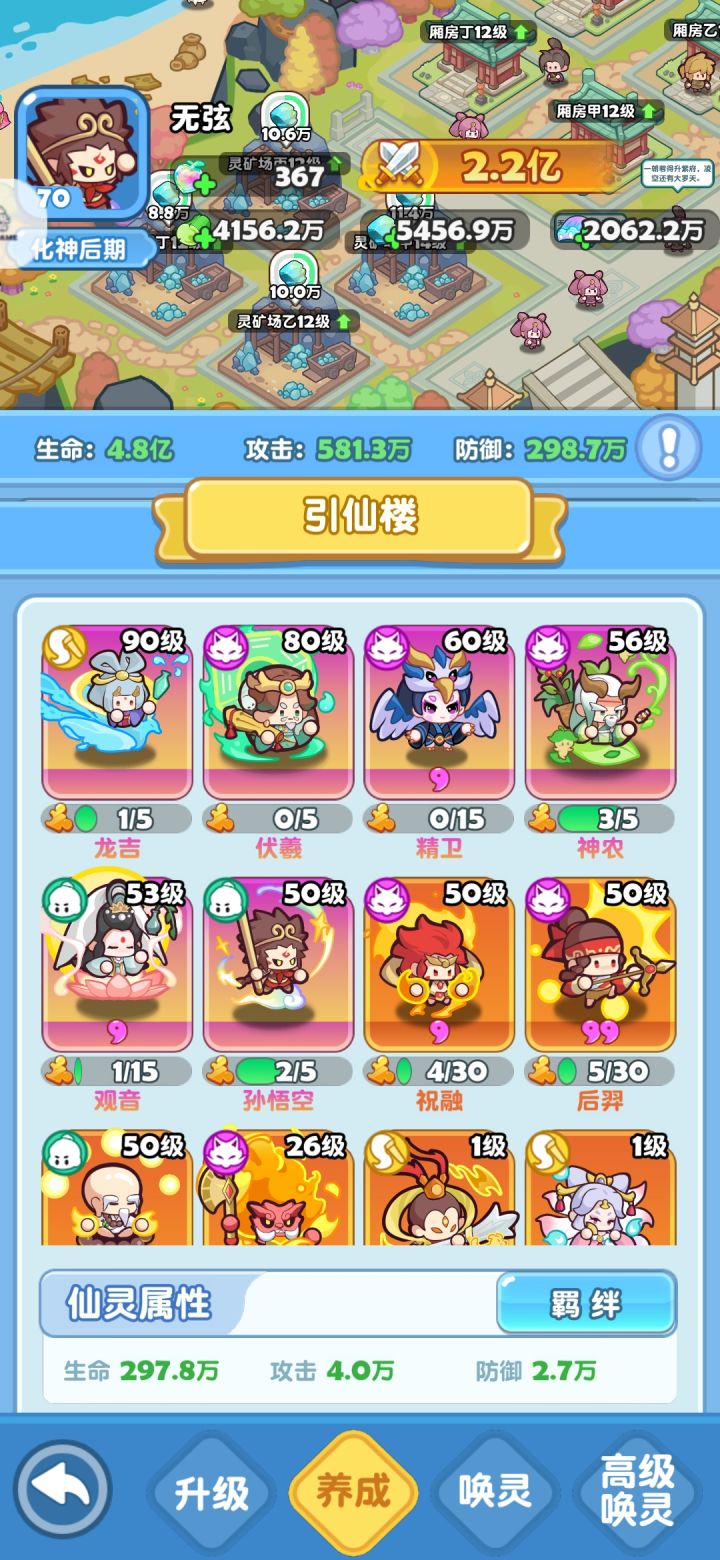 推副本首选龙吉+猴子+伏羲+神农,助战精卫。法术随意看情况。法宝毒葫芦,水灵根闪避20%,推副本真的很好用,这个阵容,然后首升猴子,次选龙吉,最后选伏羲,其他两位看情况,有多的资源的话可以给他们升点,我目前只有十位仙友升了级,其实应该要选15位仙友,但是资源太少了,不够升。我目前也只抽到了这些仙友,上面的阵容是我用过的比较好推副本的,如果攻击不够的话,换神农下来上后羿或者刑天(碎碎念,刑天还没资源