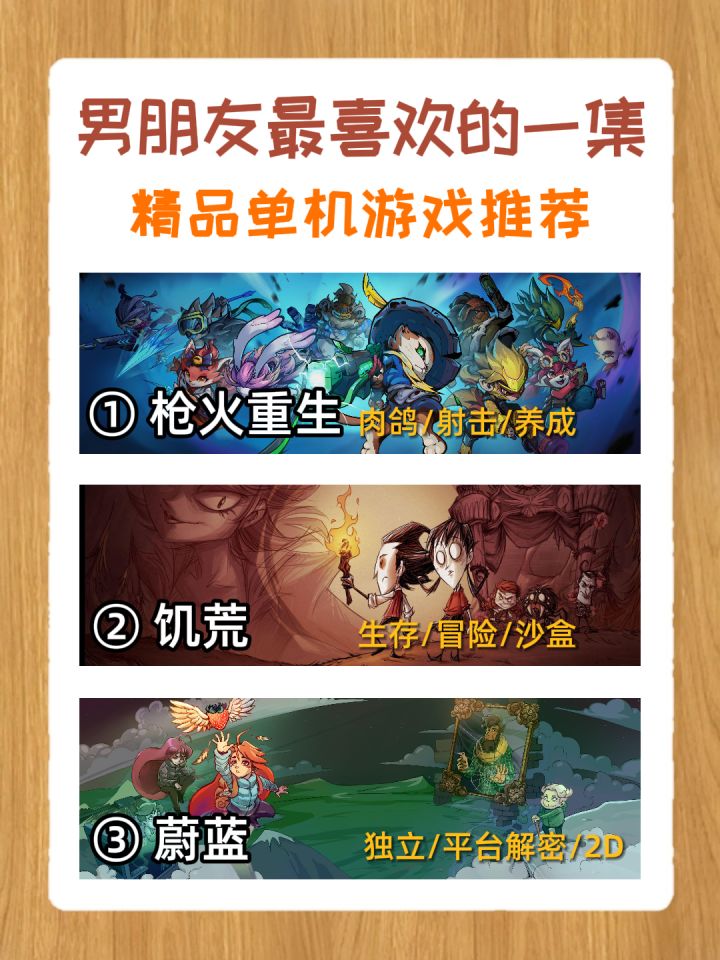 Hey宝贝们!今天要给大家安利三款超级好玩的单机游戏😊,特别适合送给爱玩游戏的男友哦!🎁第一款:🎮《枪火重生》🔫这是一款超炫酷的射击游戏!💥男友如果喜欢刺激和枪战🔫,这款绝对不容错过!画面精美,操作感满分,保证他玩起来嗨翻天!🎉第二款:🌾《饥荒》🏠这是一款生存冒险游戏🔍,男友需要在一个荒凉的世界里寻找食物、建造基地🏠,生存下去。考验智慧与策略,绝对能让他沉迷其中,无法自拔!😍第三款:🌈《