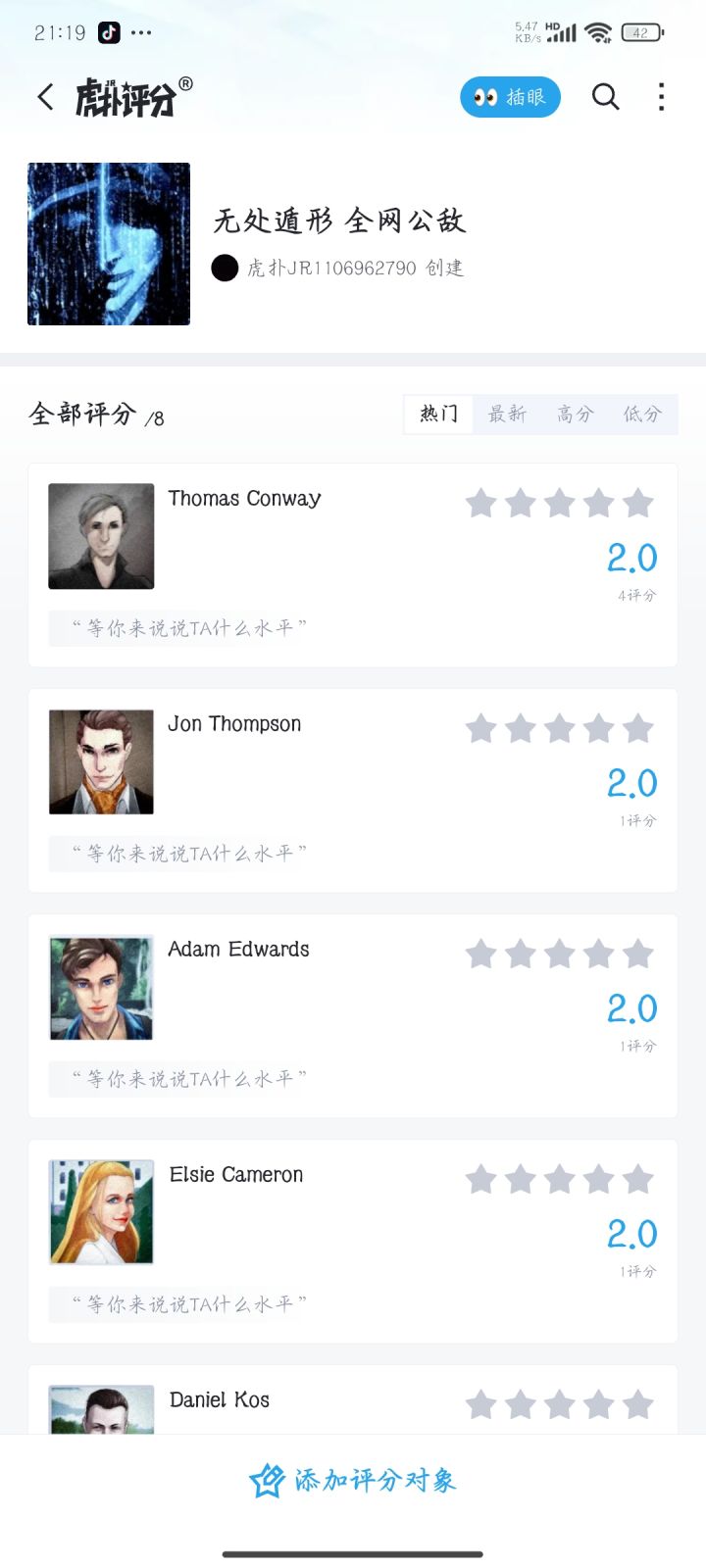 小哥哥,小姐姐,在虎扑里了。全网公敌评分