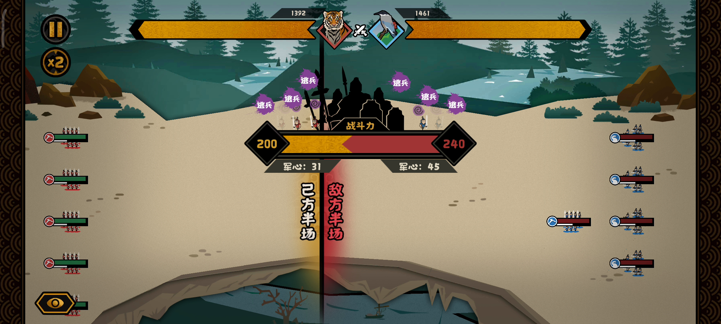 关于这次活动,对大多数玩家来说都是很恶心的,因为机制不明确,所以很多人都玩不明白,各它你能不能干点人事?然后嘛,改变不了环境那就改变自己呗,我总结了一些经验,希望有用。首先我自己也是打了很多次才打了十分,说白了还是兵种克制和地形那一套,努力刷个阵容,比如平原五个枪兵对骑兵,平原五个骑兵对弓兵,你把难度拉满大概率也是能过的,过不了就大退sl,惜败的情况下说不定就可以翻盘了,注意别等打完了才sl,会