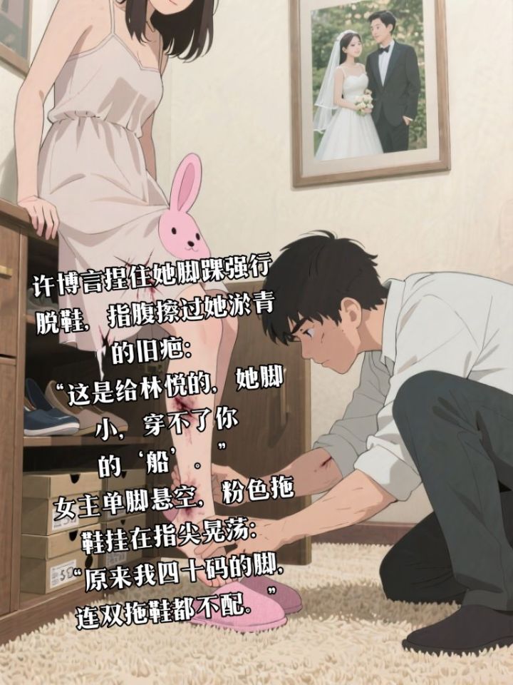 许博言捏住她脚踝强行脱鞋,指腹擦过她淤青的旧疤:“这是给林悦的,她脚小,穿不了你的‘船’。”女主单脚悬空,粉色拖鞋挂在指尖晃荡:“原来我四十码的脚,连双拖鞋都不配。”太虐了我测#虐文 #网络小说 #游戏日常 #视觉小说 #爱情