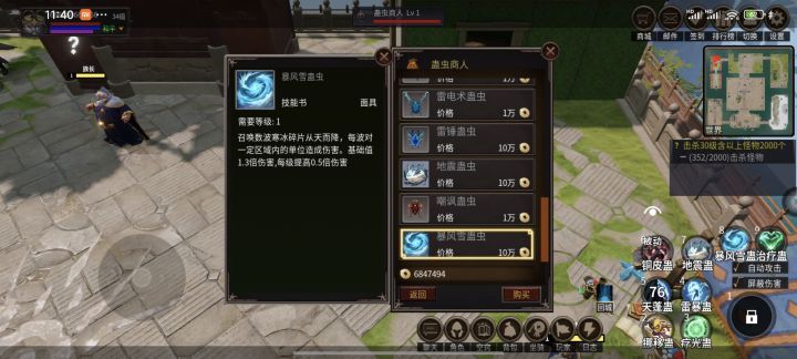#蛊惑江湖删档测试 等级:靠接任务完成获得大额经验。装备:刷怪会爆,打BOSS几率给好装备,NPC售卖。金币:进入游戏会送一笔巨款,右上角邮件自行领取。蛊(技能):因为是一个刷怪升级的游戏,首选2个群攻技能,都升到4级就可以开干了。卡boss:部分怪物会卡位,可以越级刷高级BOSS哦。进入游戏绕当前图一圈,熟悉下NPC的位置,找到武器商人买一把1亿的武器,买10万的群攻和群疗蛊,学到4级,单体攻