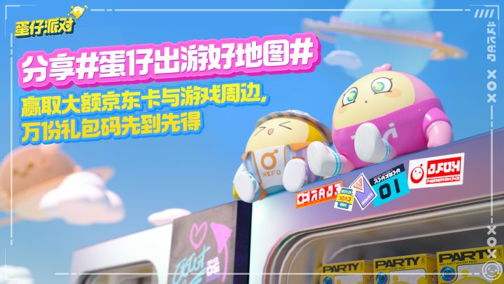 以「图文」或「视频」的形式尽情分享心仪地图,大额京东卡、蛋仔派对周边和游戏礼包等好礼在前方向蛋仔招手啦!
