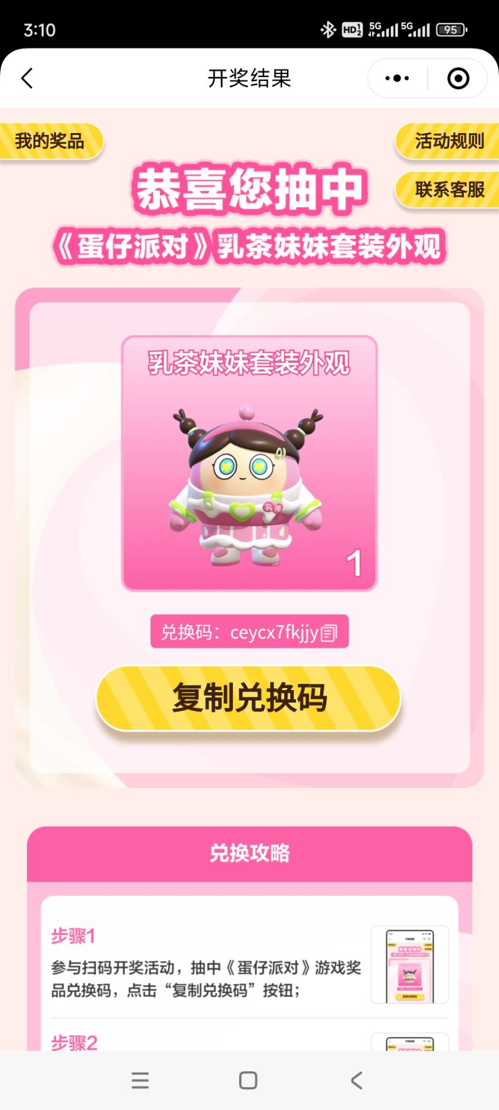 太幸运了![表情_酷]中奖 #蛋仔派对 #蛋仔派对兑换码