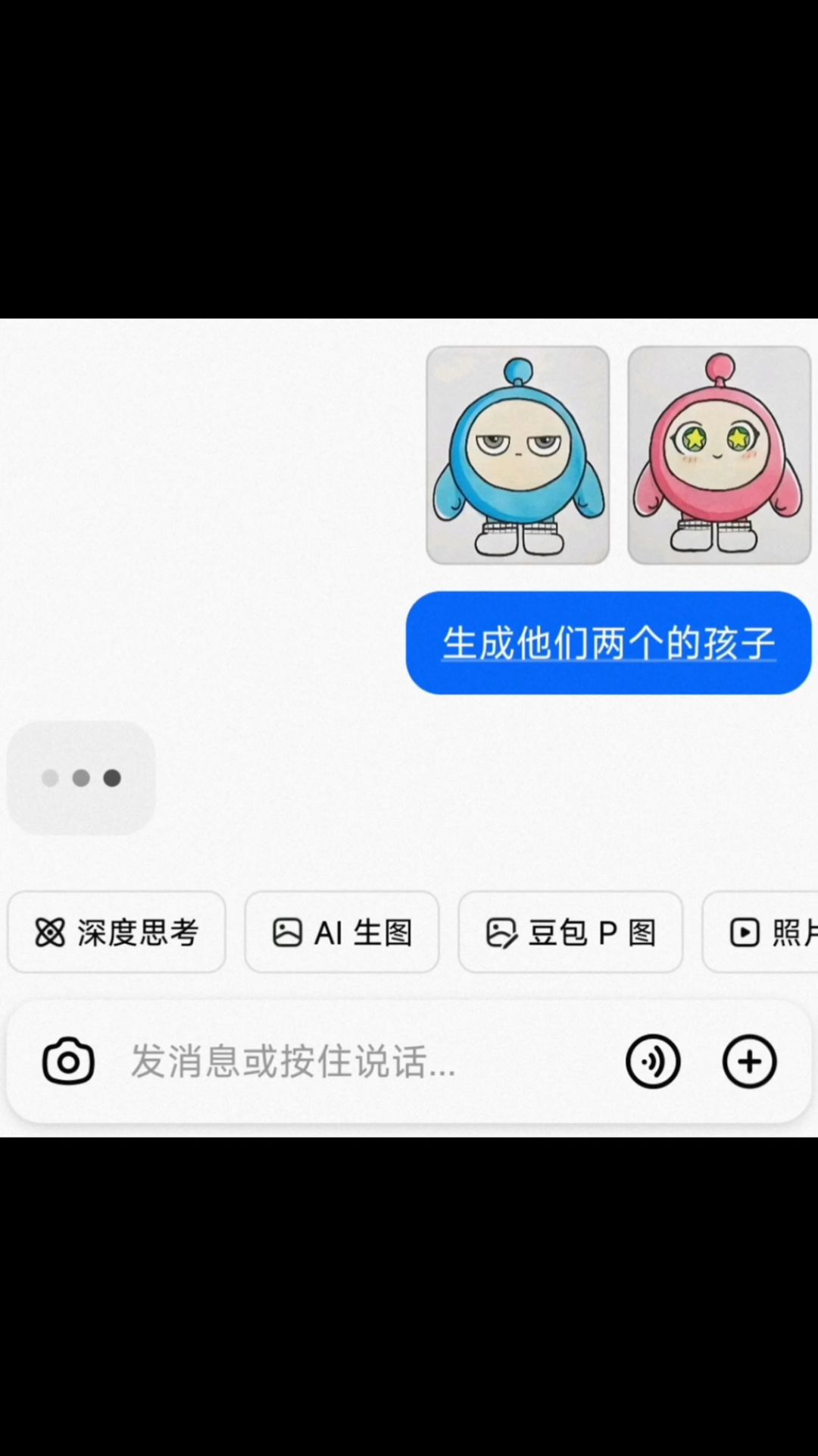让豆包生成 小蓝和小粉的孩子,最后竟然……