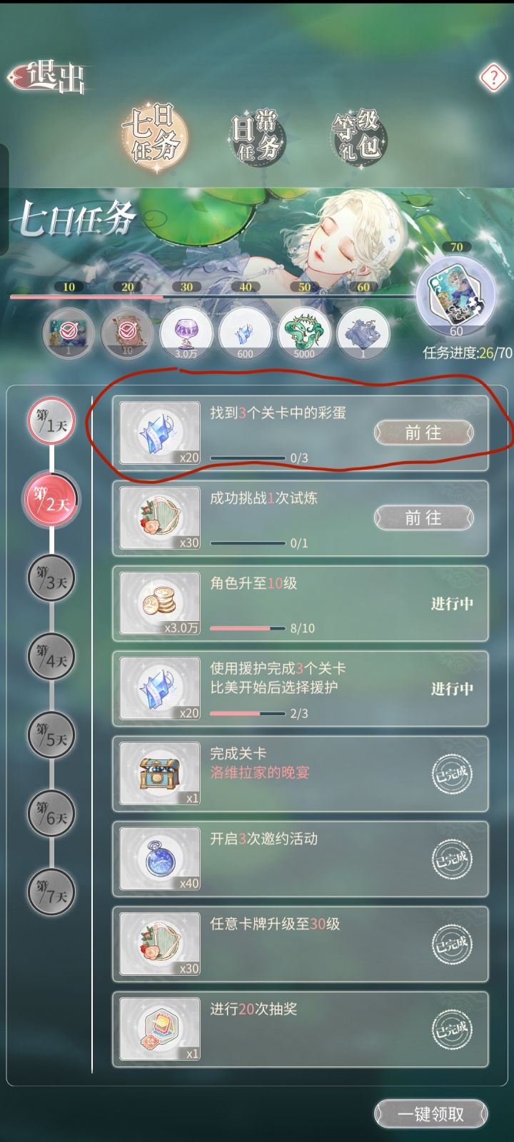 就是图一里划圈的找彩蛋的这个任务,我在图二的普通关卡里找了好几个,但是这个人物一点进度都没有#螺旋圆舞曲2蔷薇战争