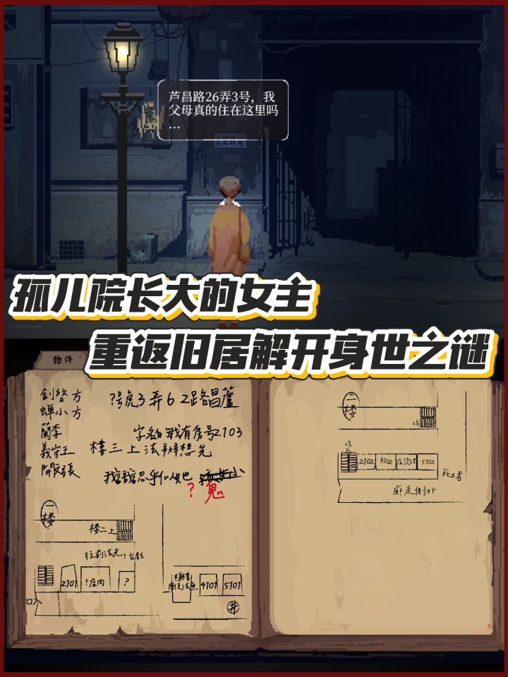 全程沪语+解谜+志怪,而背景也发生在民国时期的上海!发现一款全新中式民俗剧情游戏---衔蝶你将作为一名在孤儿院长大的女孩吕萍,收到一封信件后重返旧居,找寻自己的身世之谜!在这里可以看到百年前上海的繁华与破败!随处可见的都是民国产物,黄包车、复古的家居、以及年代感十足的海报等等~回到旧居芦昌弄,时而出现的女孩、疯癫的男人、张贴数张的鼠疫内容以及楼道中的老鼠洞,多种诡异的事情接踵而至!游戏的