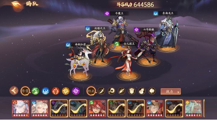 大家好!今天给大家分享几套肉队阵容,当然因为30星以上互斥bp,那么这些队伍角色一般也很难拿到,这里就不做讨论,今天分享几套在30星之前的上分阵容。这几套都是我之前打的时候用过的,大家可以根据环境的不同选择不同的肉队阵容,当然如果有更好的阵容小伙伴们也可以在评论区补充讨论。那我们话不多说,直接进入主题。●阵容推荐一前排:龙王,黑猴,女儿后排:牛魔王,南极仙翁,拖塔天王说一下我个人的披