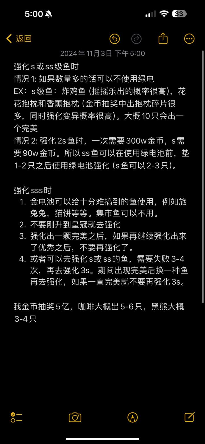 #觉醒攻略 #新手攻略 本次攻略比较多,我也懒得分开写了,一次性发出来,图一是新手7天活动前面是任务,后面是奖励。图二是新手快速获得白羊座觉醒。图三是部分鱼变异数量,并不是百分百哈,只能是说大概,上下会略有浮动,欧皇非酋不算。这些都是大佬给的,我觉得你们会用到。所以都放了。图四是强化大法。我自己总结的。我口述给小伙伴,小伙伴给我写成文字版本的,因为我实在太懒了。强化周其实分为两种:一个是折扣强化周