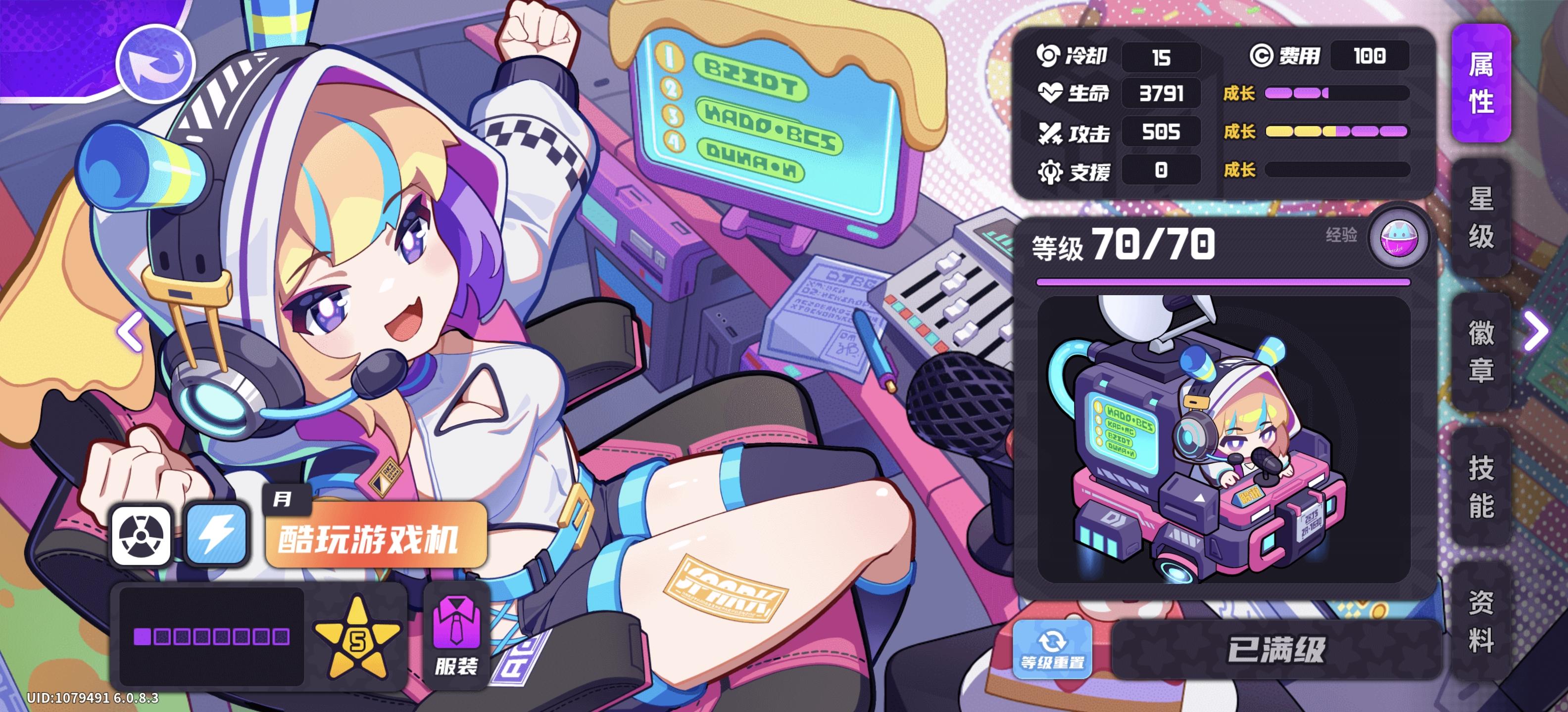 #角色分享 #盲盒派对 我非常喜欢电玩属性的角色,电玩少女也很喜欢,月和赛博忍者卡池出来的时候,着实让我心动,果断的抽了。原立绘非常好看,有种冷淡飒爽的感觉。就觉得比较可惜,如果是电玩少女的那样技能就好了。作为一名投手,伤害还可以,就是有点小透明了,不过强度够用。