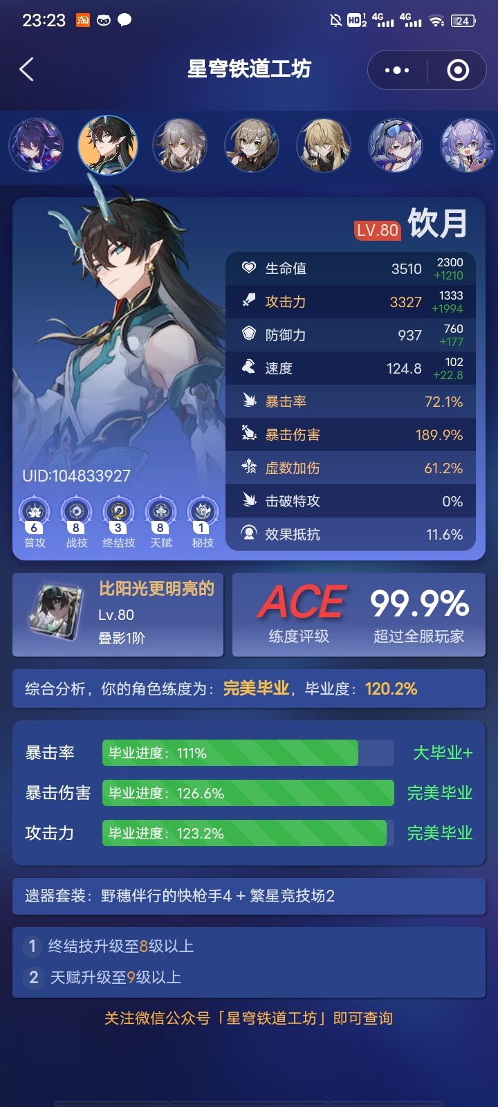 有比我高的面板记得发出来让我看看哦 刷了2周的结果,应该还可以吧?#游戏安利#游戏讨论#遗器#评分#角色面板