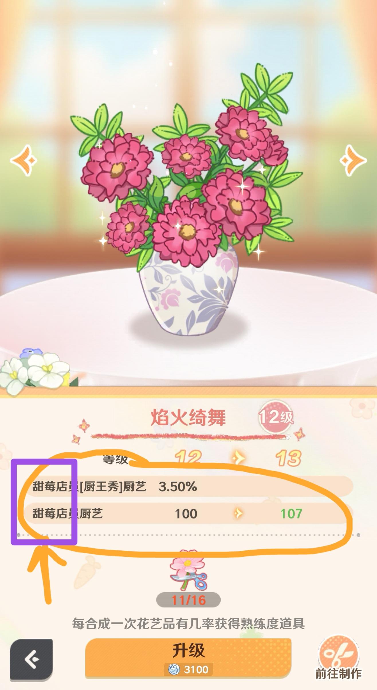 给刚弄花田的宝贝们一点攻略🥰一是一定要先做完美和典藏的花,就是图一图二里我标记的黄色背景和粉红色背景的,会给很多战力,很划算。二是要是要注意好自己做花,是为了提升店员的什么属性,自己养的是什么特质的店员,找能提升对应属性的话再种,会对战力有很大的提升。花田对战力的提升真的特别特别大,尤其现在有了很多高级的花,建议大家都合理规划,找最高效的种花方式U