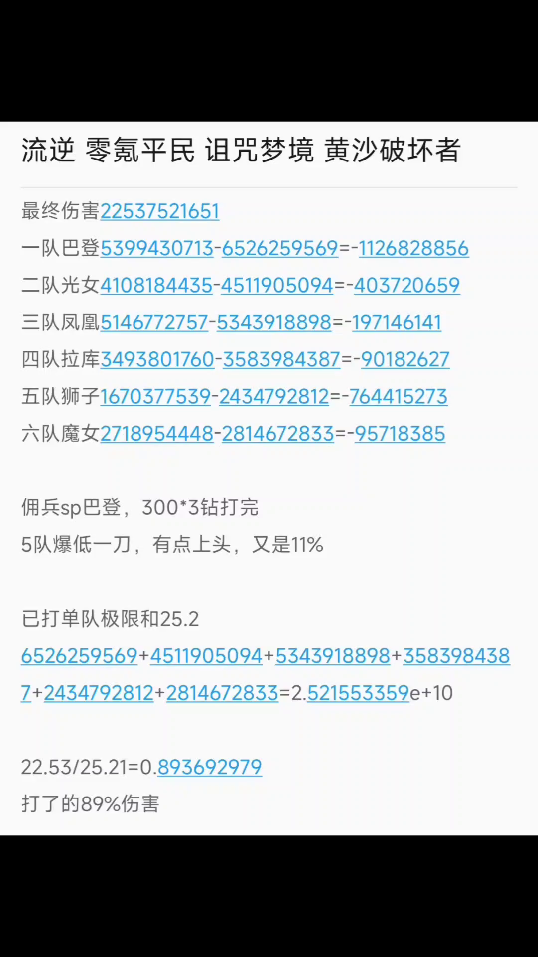 诅咒梦境 年兽22.5B 极限25.2B 零氪流逆