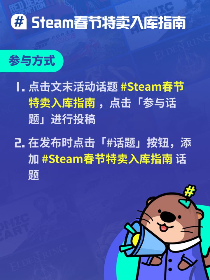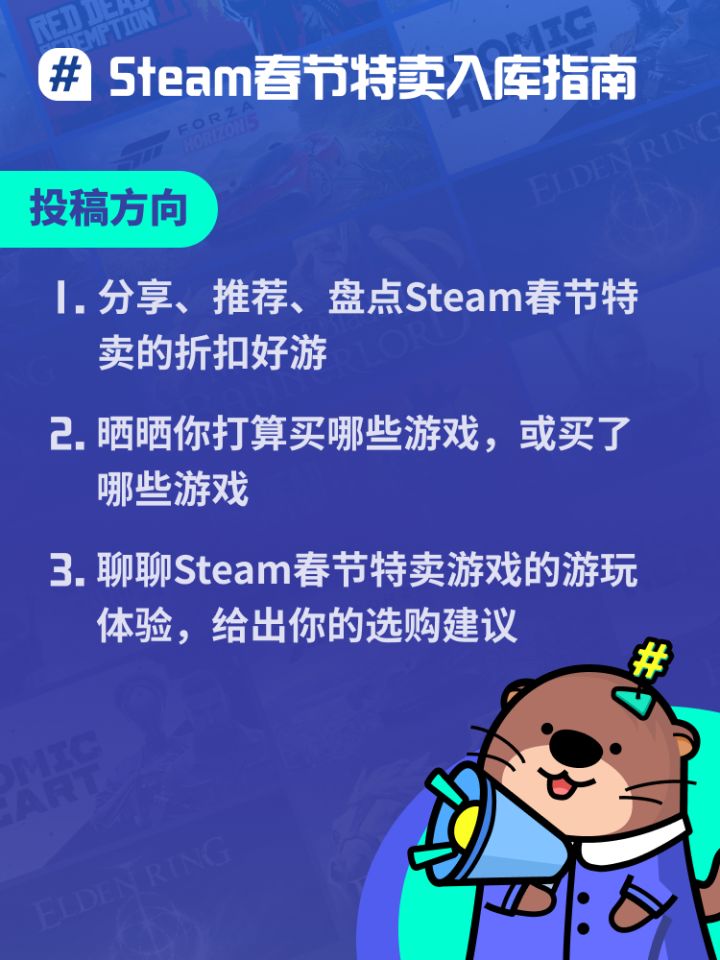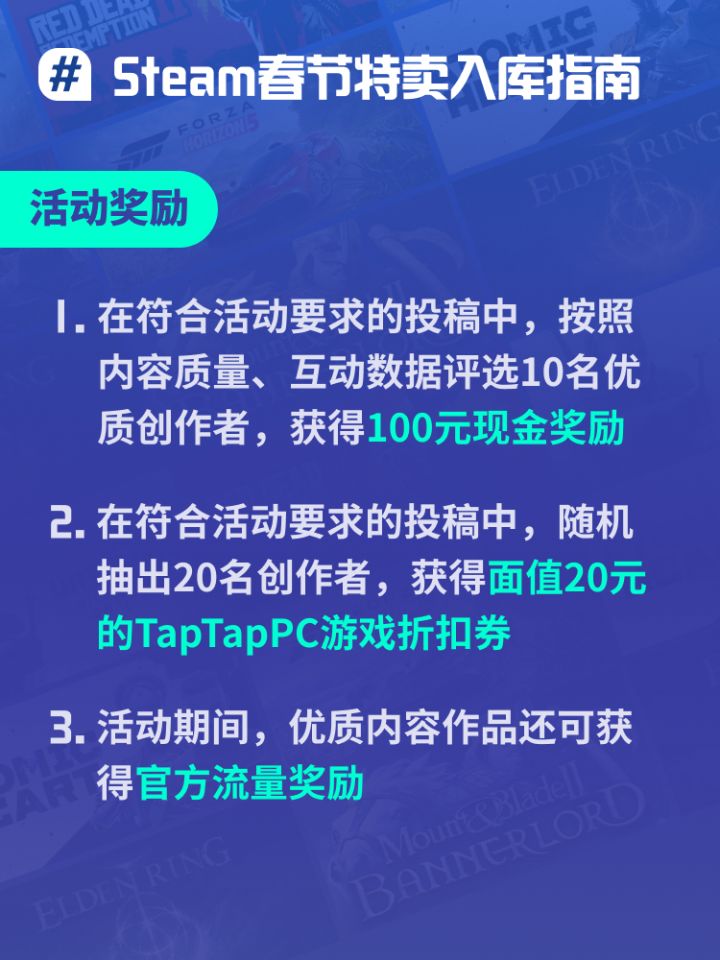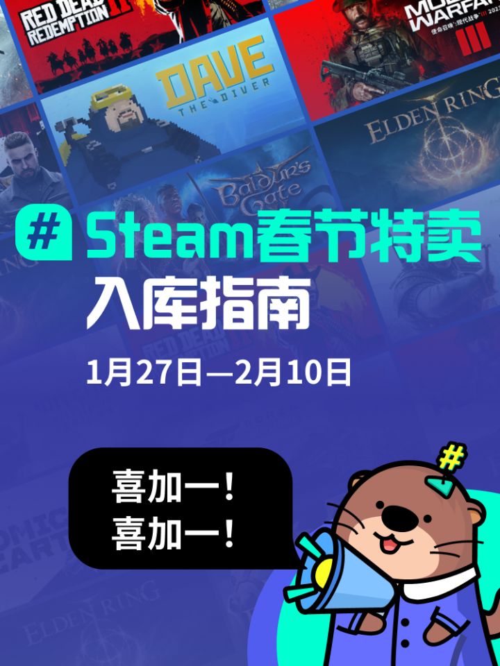 太好了,是Steam春节特卖,我们的钱包有救啦!这次春节特卖里,有哪些你收藏已久的好游打折、史低?成功入库了哪些游戏?快来和大家聊聊你的入库清单吧!可以分享你计划入库的游戏,聊聊你的游玩感受~也可以推荐、盘点一波价格美丽的大作,让大伙儿抄抄作业!🎁本獭准备了10份100元现金、20份面值20元的TapTapPC游戏折扣券,参与活动就有机会获得奖励哟! 【投稿时间】2025.1.27-20