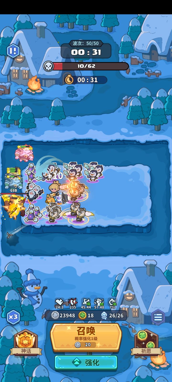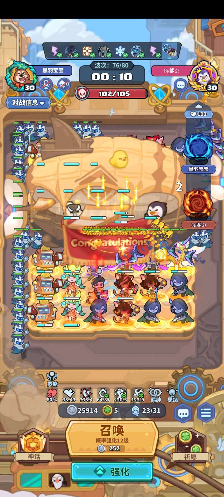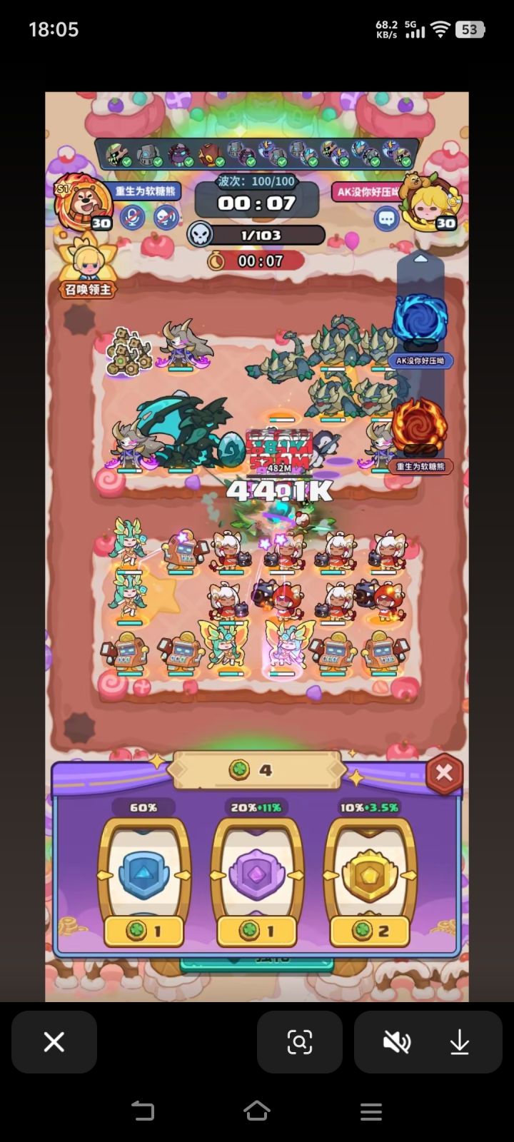 #该出奇兵啦 主C:60波之前 2妖精 8打币 2死灵60波首领第二次技能必定放「枯萎」,退2死灵3打币。然后补企鹅或者龙90波首领必有退场,退掉5打币,形成如上阵容站位。辅助:给主c传送1荧,3天使,一组牛头或者毁灭装置。50波大概率有传送,没有传送的话60卡首领时间等传送。