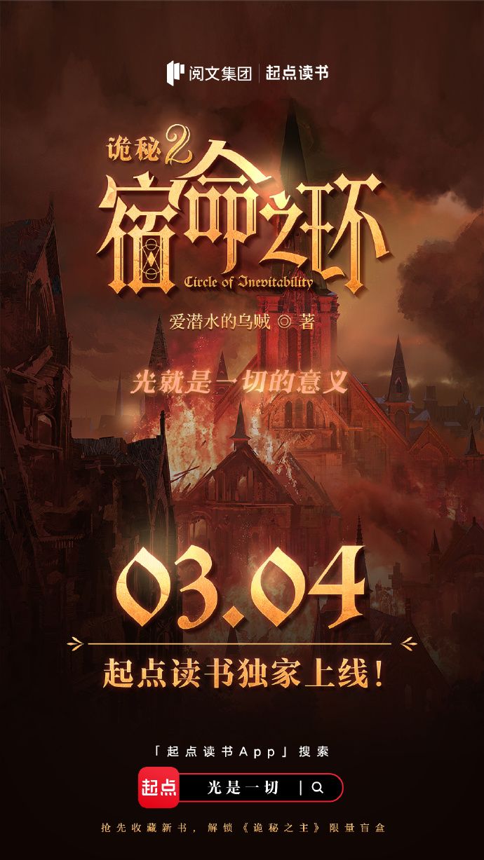 提醒各位卷毛狒狒,《诡秘之主》第二部《宿命之环》3月4日开始连载!