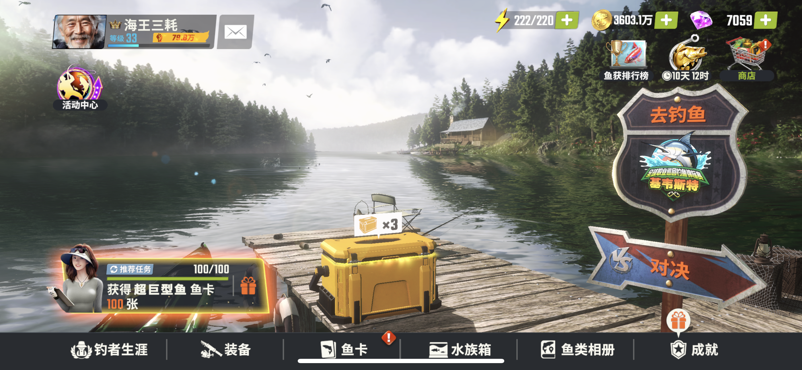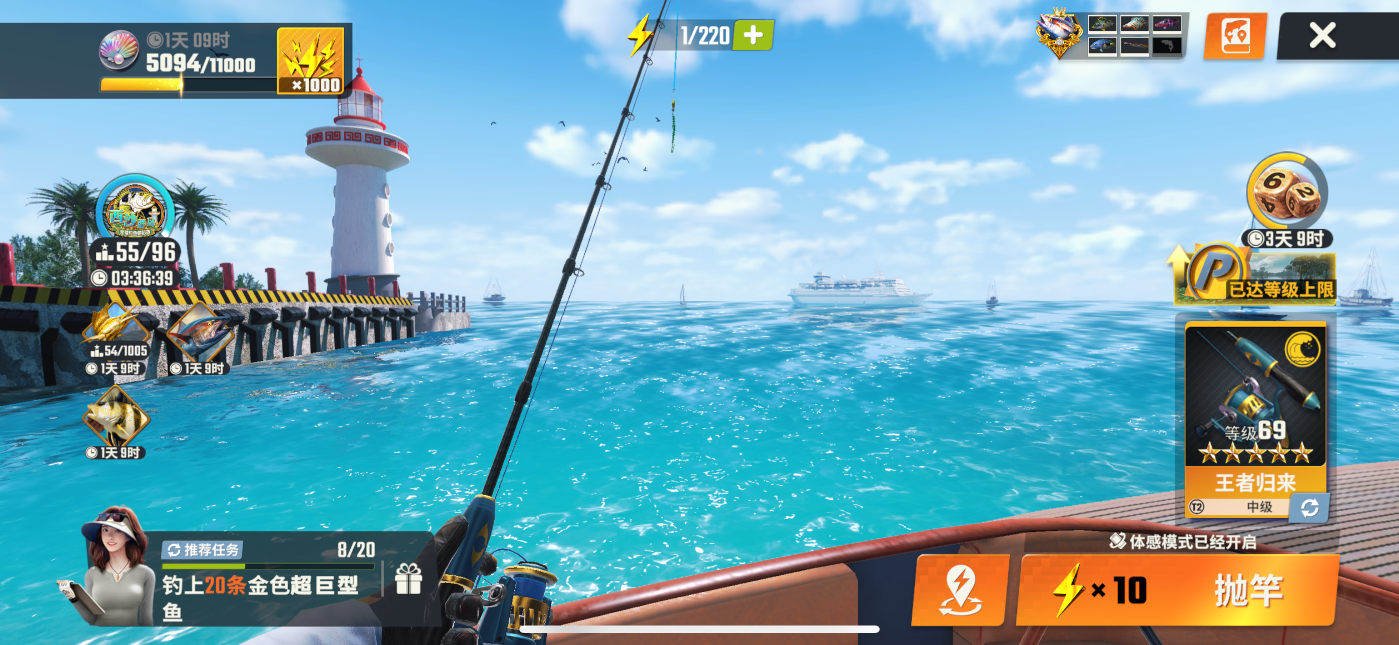 游玩时长33个小时左右,作为休闲游戏来讲是一款非常不错的拟真钓鱼手游。 一、优点: 1:游戏画面、背景音乐、游戏建模都非常精美 。 2:操作界面简单、物资获取相较轻松0氪也能玩,排行榜以及渔场奖励也不算吝啬对玩家较为友好。 3:稀有鱼分类和机遇机制以及稀有鱼获取难度能让玩家获得幸运感、满足感以及好胜心方面的满足。 二、缺点: 1:游戏体力不够用,渔场以及其它活动完成较难(完成任务及活动条件需要耗费
