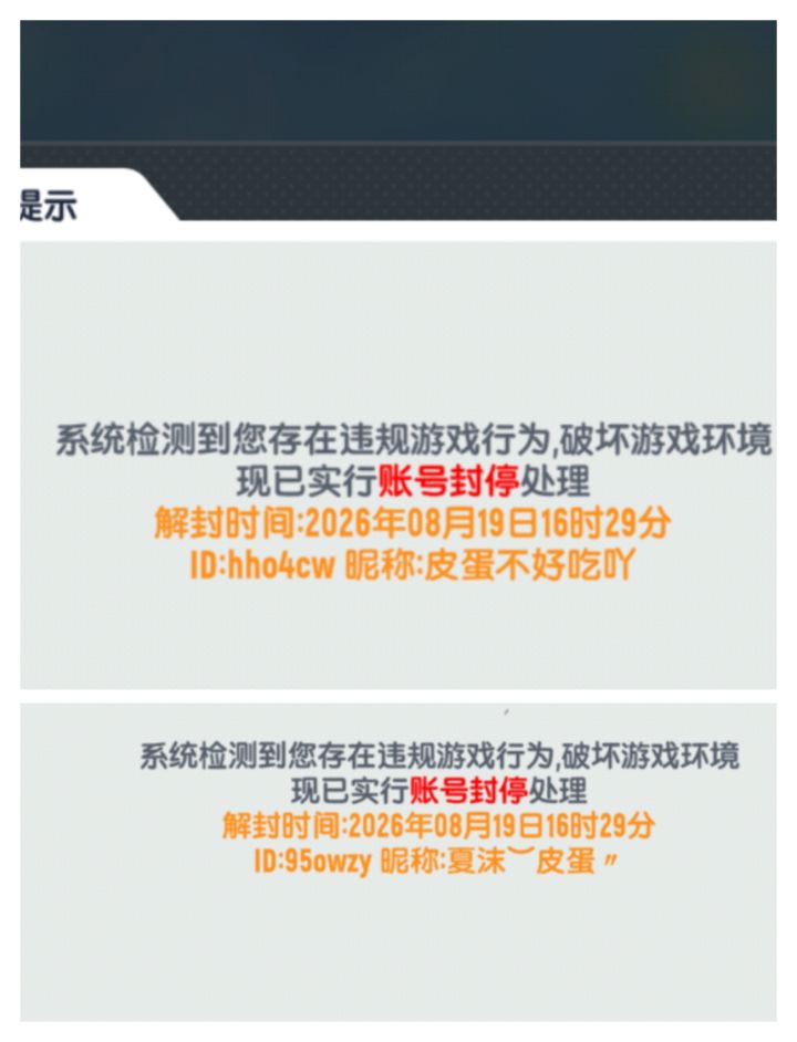 论坛各位管理过年好,玩这游戏快一个月了,中间喊上两个朋友过来玩。其中一个手残,摇钱树都要争取保底的那种。靠刷绿洞爆了两个白色力道,才开上至尊战令,最近他两个号挂练功的时候(一个号电脑登录,另外一个手机挂的离线),都给封了。总共两个账号,1个账号就玩一个角色。朋友年纪大了,发帖啥的都不懂。我代为他问下账号若是误封解封的途径。账号:xxx555444321,xxx555444321。祝异侠传越来越好,