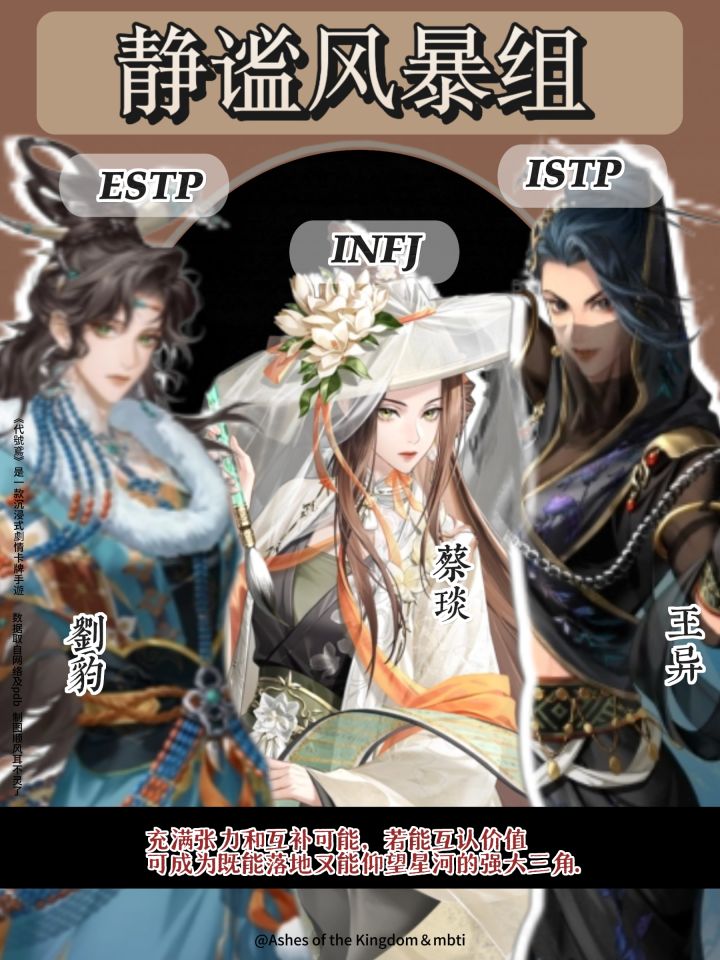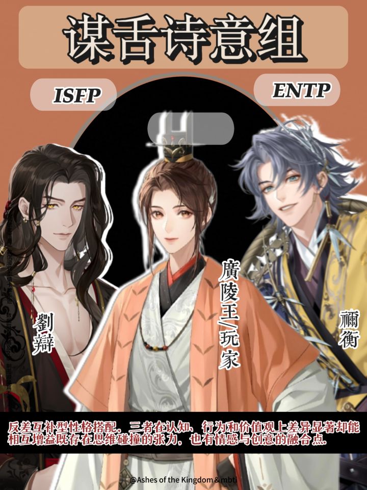 补全下篇!论鸢子里三人组的超强羁绊MBTI版!都是我喜欢的角色和密探~灵感来源:薯条不知道🍟 老师[害羞R]注:(玩家为自定义内容,数据取自pdb及网络,务必理性看待)#代号鸢 #如鸢 #陈登 #蔡琰 #刘辩 #贾诩 #MBTI