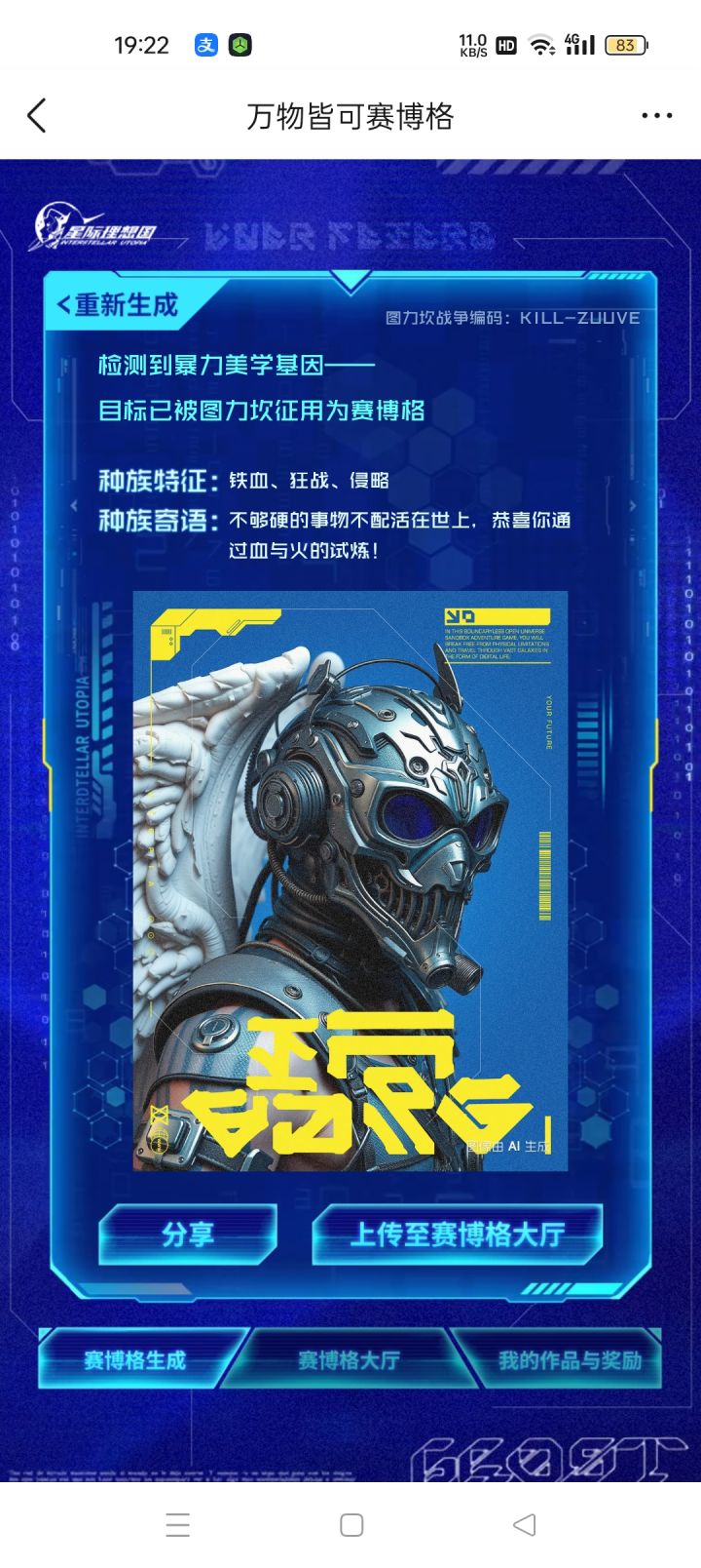 各位上传者们,【这一次我不做人啦!上传你的“非人类”赛博格证件照! 】福利活动已经圆满结束。感谢每一位上传者在活动期间的积极参与和支持。你们的每一次互动,都让我们感受到大家对星际理想国的关注与喜爱,也激励着我们不断前行。经过认真筛选,我们从众多符合条件参与者中随机选出了5位幸运上传者,他们将获得本次欧皇奖(每份含100元京东卡1张+徽章随机款4个+透扇随机款2个+环保袋1个),参与奖(每份含50元