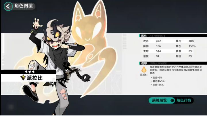 #赛尔计划##赛尔计划危险速递#派拉比是3星角色,我是没有想到的,毕竟一开始剧情就有他,派拉比是打流血机制的角色,感觉可以跟后续卡鲁耶克搭配,1技能打单体概率流血,暴击的话提高30%概率,天赋选1技能后还有概率降攻。2技能全体加暴击1回合,天赋的2技能前有buff存在使用则概率延长1个回合,但概率很低。3技能打单体,技能前有流血debuff,会附加害怕2回合,天赋选3技能暴击后概率附加流血debu