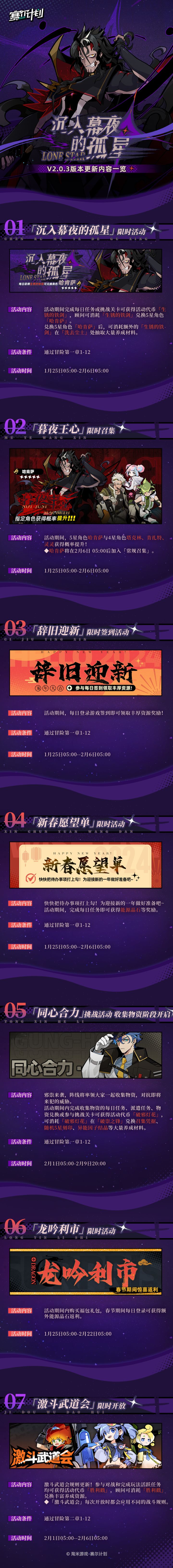 《赛尔计划》V2.0.3版本「沉入幕夜的孤星」将于1月25日上线!活动详情顾问可点击下方长图进行查看哦~---------------------有关#赛尔计划#的更多信息,还请顾问多多关注我们赛尔计划官方账号了解第一资讯。◈赛尔计划公测现已开启,点击前往赛尔计划官网下载>>>http://sp.61.com/◈赛尔计划官方粉丝交流群:713285272#游戏安利#游戏推荐#赛尔号#赛尔计划哈肯萨