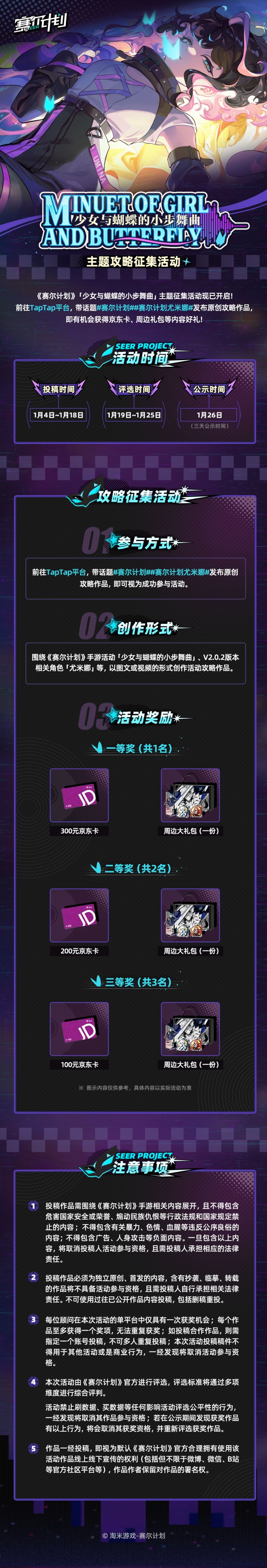《赛尔计划》「少女与蝴蝶的小步舞曲」主题攻略征集活动现已开启!前往TapTap平台,带话题#赛尔计划##赛尔计划尤米娜#发布原创攻略作品,即有机会获得京东卡、周边礼包等内容好礼!★活动时间:1月4日~1月18日★参与方式:活动时间内,前往TapTap平台,带话题#赛尔计划##赛尔计划凝视深渊#发布原创攻略作品,即可视为成功参与活动。更多活动内容详情,点击下方长图进行查看~#游戏安利#游戏推荐#赛尔号