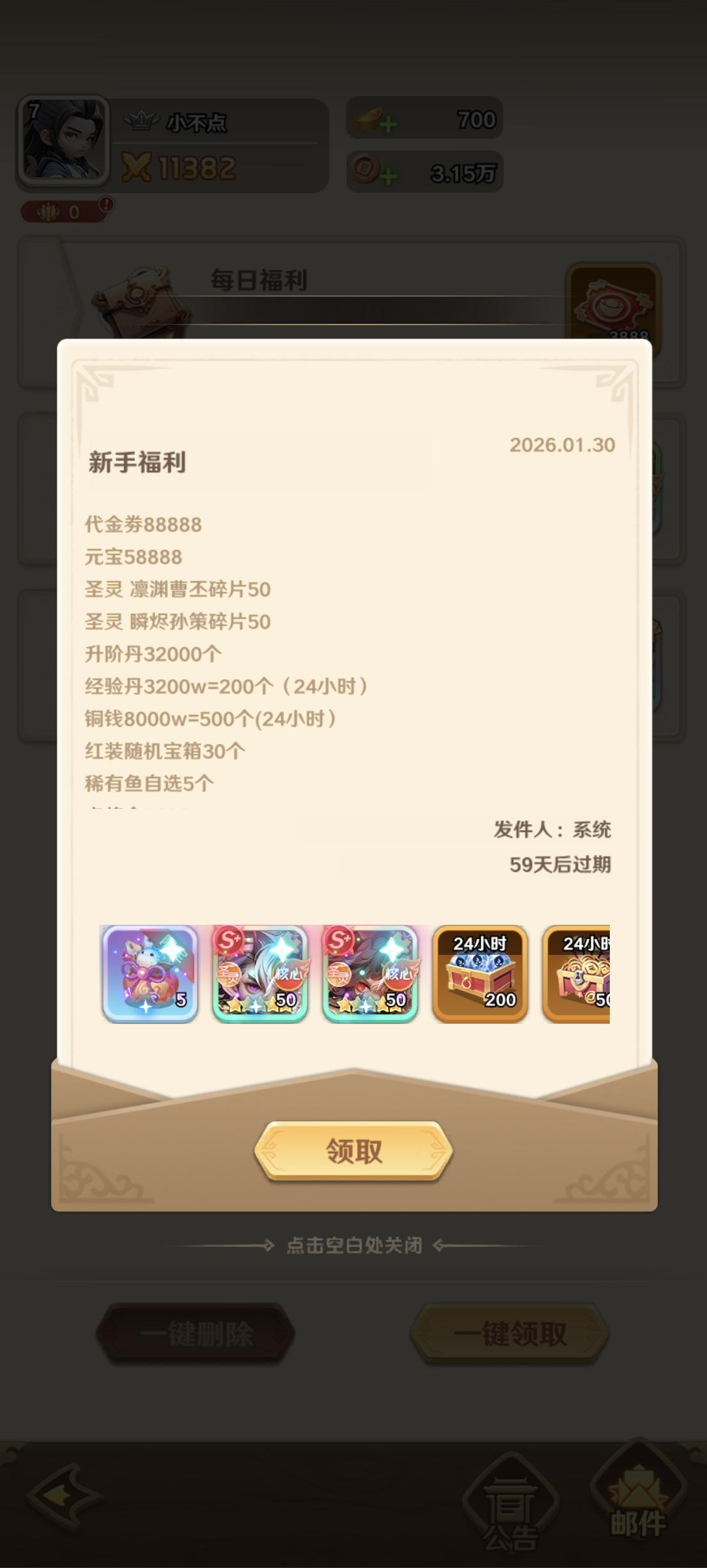 【0.1折版本】648只需6.48!【100000抽】每日登录免费领取高级求贤令,总计赠送十万抽!【20星无双】14日登录送20星无双黄忠,本体狗粮全包,免费养成!【混沌张飞】上线创角即送混沌武将,无双张飞,真伤AOE,额外技能!【在线送T0】首日在线,送无双英雄,上将黄忠,直送8星!【7日庆典】7日任务免费送20星上将马超,五虎上将免费得三【每日五千充值】每日领5000元充值卡!#