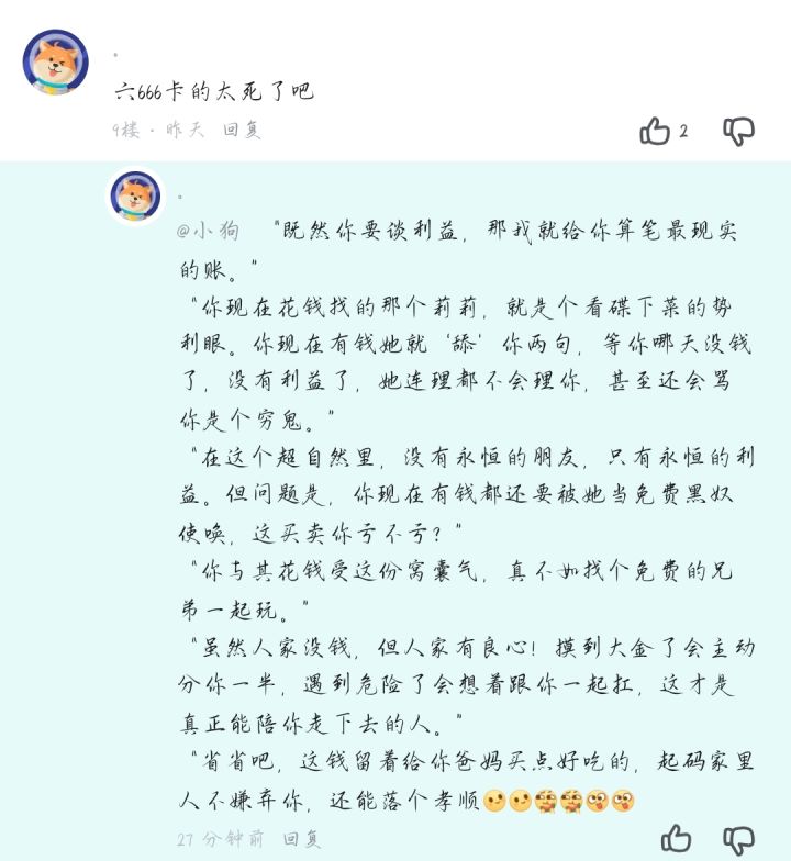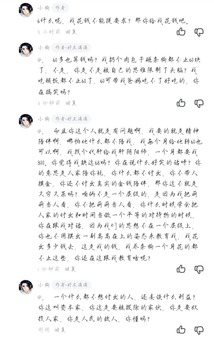 我不知道现在是养成了一种什么风气,不把对方的付出当做付出,他的这个言论出自于我要给我的丽丽魔盒,每个天带他打200w也就是我只用每天花时间陪他,然后定期给他买一个魔盒就足够了,我觉得这是对于一个有稳定输出的人的最基本的尊重,相对应的我会有要求,比如我希望他是一个萌新,我希望我们两个的时间对齐,这是最基本的,因为我付出了,所以我有要求。因为我知道他也要付出与我相等的时间,甚至要迁就我的时间去带他