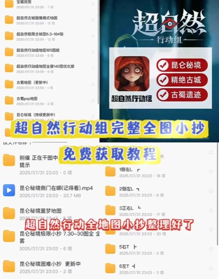 超自然行动组 地图小抄大全(含古城+古蜀+昆仑合集): 链接:https://pan.quark.cn/s/e73e065b4d32 精绝古城(含普通+困难+极限+宝藏图,里面有三个作者的图,分好类了) 链接:https://pan.quark.cn/s/cbe8f271d31d 古蜀遗迹(极限+宝藏房,PVP双队四队) 链接:https://pan.quark.cn/s/fac1a1877e04