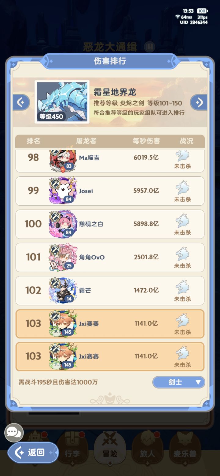 0氪1区小剑士纪念合服前三转冰龙上榜