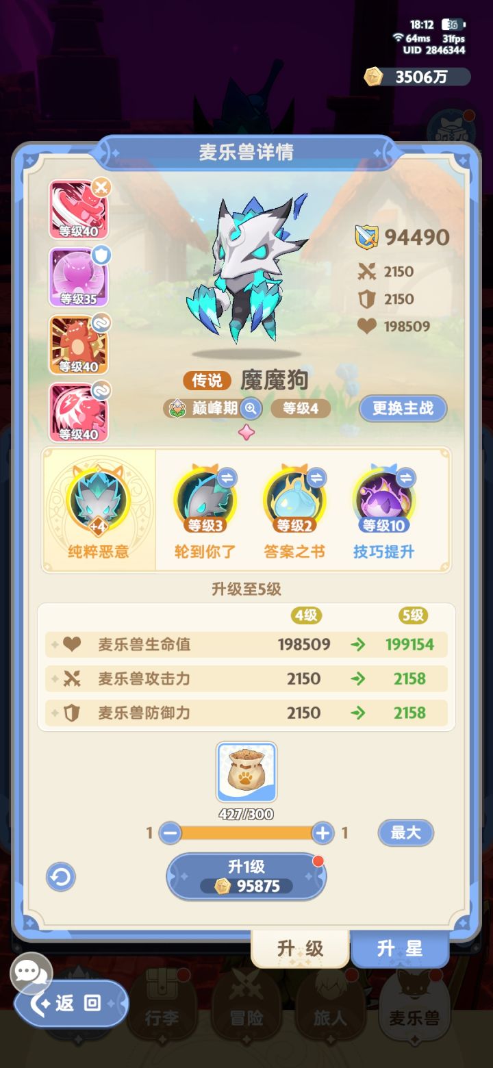 开篇先感谢一下看帖的小伙伴们的支持,本次单通的是第一梦魇中眠域困难难度。过的时候有些激动,忘了截图伤害统计,打boss得时候到了5.5亿秒伤,之前试了几次,少于5.3亿秒伤过也不了。这期是换上红一狗后的单通首秀,所以就聊一聊红1金5金3狗的伤害对比吧。小up到现在为止没有抽齐橙宠,只有智多谋5碎片,所以同等条件下能对比的只有金3 74、金5 44、红1 32,第三个技能带技巧5.5%不变,猫猫超持