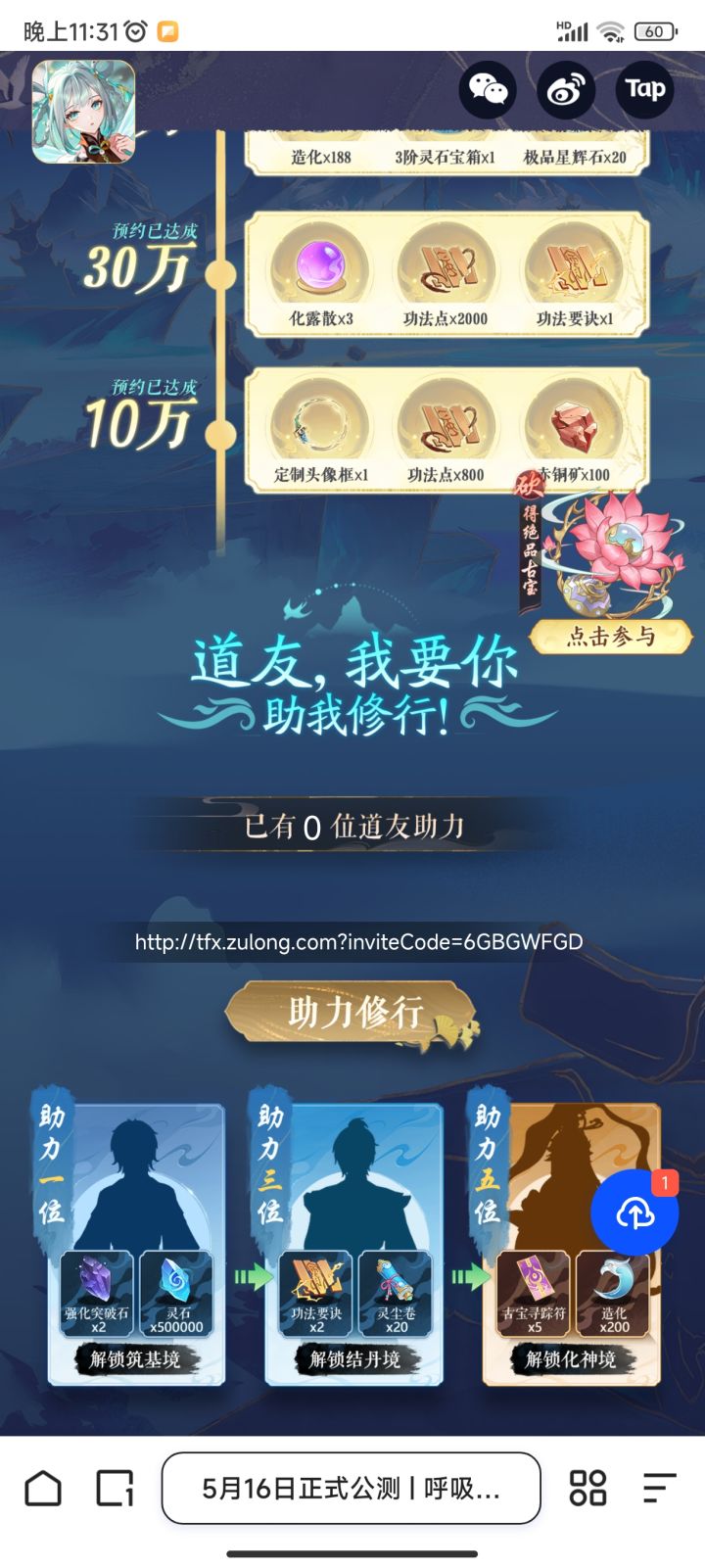 https://tfx.zulong.com/activity/kyd/index.html?invitecode=29NZUMZ&invitecode=29NZUMZ#踏风行 #踏风行仙隐录 #踏风行聚贤庄 #踏风行公测定档516 #踏风行创作者激励计划 #踏风行创想试道会 #踏风行攻略 #修猫修狗踏风行 #踏风行代言人到底是谁 #踏风行定档发布会