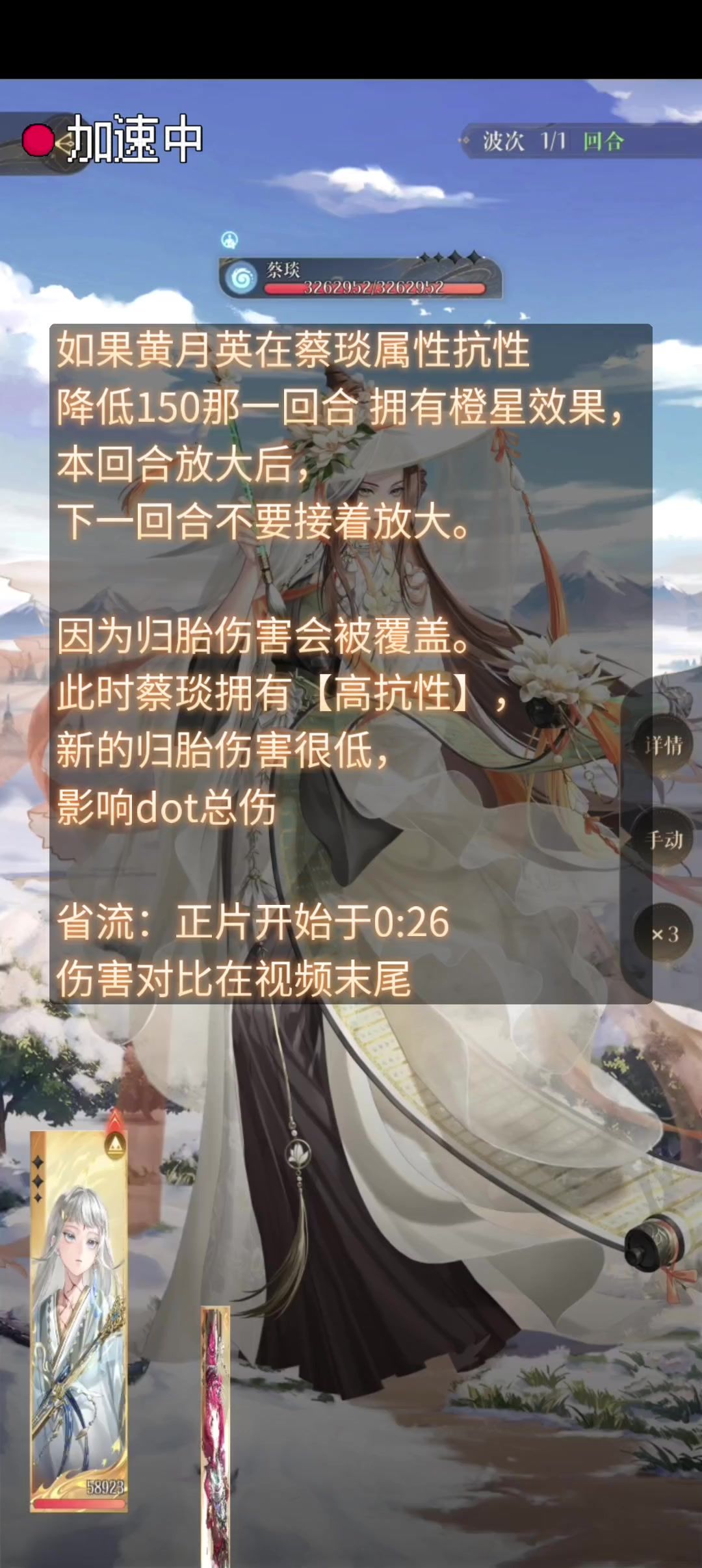 如果黄月英在蔡琰属性抗性 降低150那一回合 拥有橙星效果, 本回合放大后, 下一回合不要接着放大。 因为归胎伤害会被覆盖。 此时蔡琰拥有【高抗性】, 新的归胎伤害很低, 影响dot总伤 省流:正片开始于0:26 伤害对比在视频末尾 #代号鸢 #如鸢 #宝藏游戏安利派对 #永久持续伤害 #踩坑