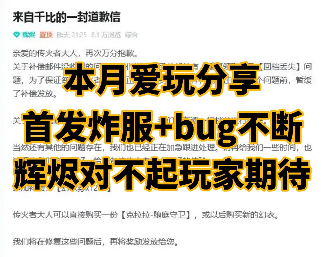 首发炸服+bug不断,辉烬对不起玩家期待