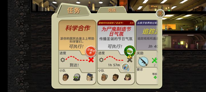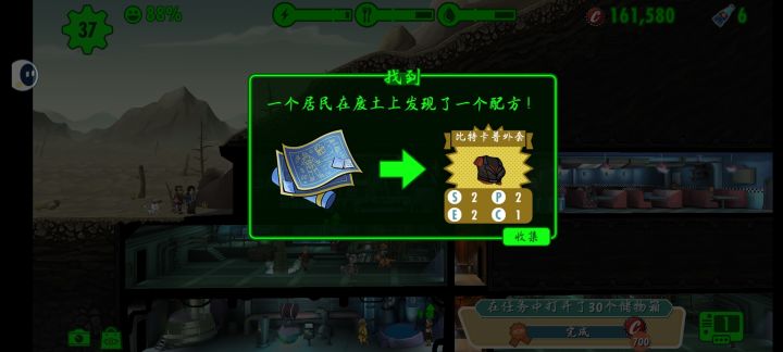 瓶瓶盖盖的任务和一些可跳过任务没做,瓶瓶盖盖会时不时来避难所有概率跳舞,跳舞的时候点击会给瓶盖或核子可乐,但其实没啥大用可有可无,#辐射避难所废土副本 #辐射避难所 #辐射避难所废土问题 #辐射避难所新手解答