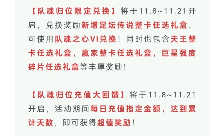 以前没有传说盒子的时候,微氪玩家每天100拉满可以获得1天王+1赢家+500限巨券,充值的金额还在微氪玩家接受外围以内,但是自从出了传说盒子兑换和巨星强度碎片任选,另外又增加了每日300档奖励队魂之心以后,情况就不一样了,每天100拉满到活动结束才将将够换一个传说盒子,换了传说盒子另外几个就换不了,反之亦然,而要是每天充值300的话,一般人谁也接受不了,要是不每日充300看着好几个奖励拿不到又不甘
