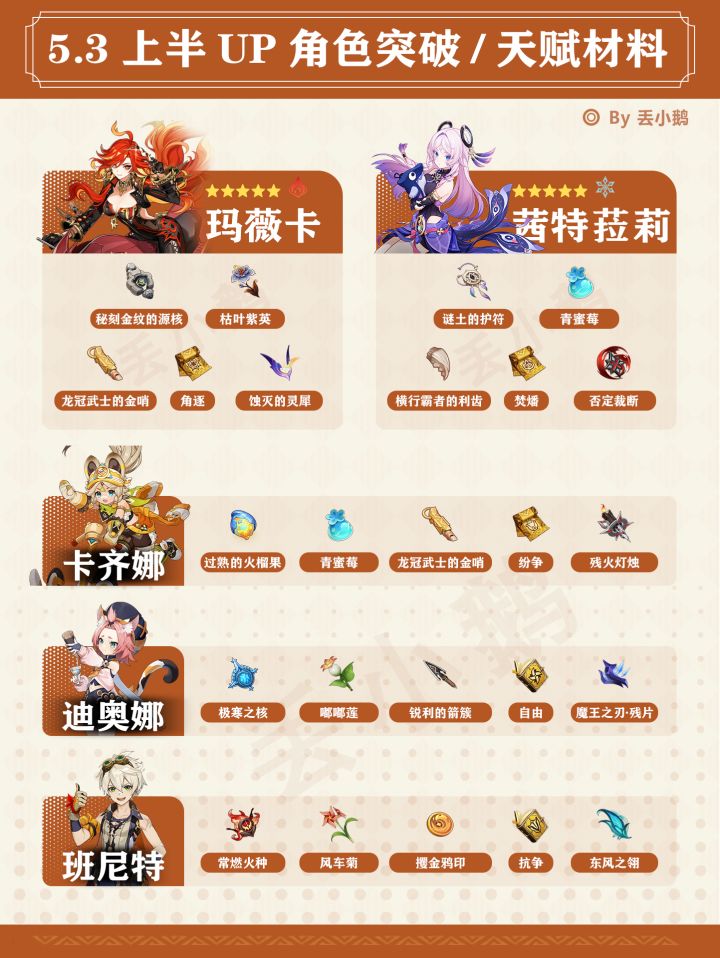【V5.3】上半Up角色突破/天赋材料