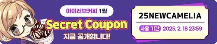 [活动]2025年1月秘密兑换码信息(~2/18)亲爱的各位店长: 我们将通知您2025年1月的秘密兑换码。 2025年1月秘密兑换码信息 :👉25NEWCAMELIA 截止2025年2月18日(周二)23:59 -⚠️注意- 兑换码使用期限结束后,您将无法获得兑换码奖励。- 如果您输入兑换码后没有收到礼物,请检查以下内容。1.尝试直接输入而不是复制。2.仔细检查您是否输