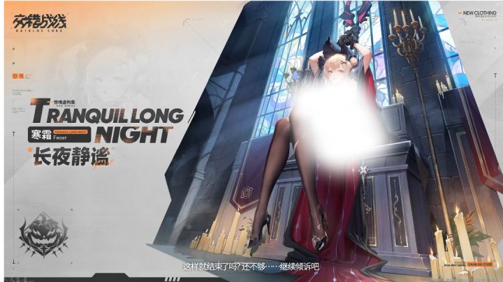 【娆婵叙歌】系列,寒霜全新时装「长夜静谧」即将限时上架! ▶▶获取途径◀◀ 5月28日12:00 — 6月11日2:59,寒霜全新时装「长夜静谧」将在【时装商店】上架并限时售卖。 #交错战线 #寒霜 #长夜静谧 #娆婵叙歌 #迷城珠影