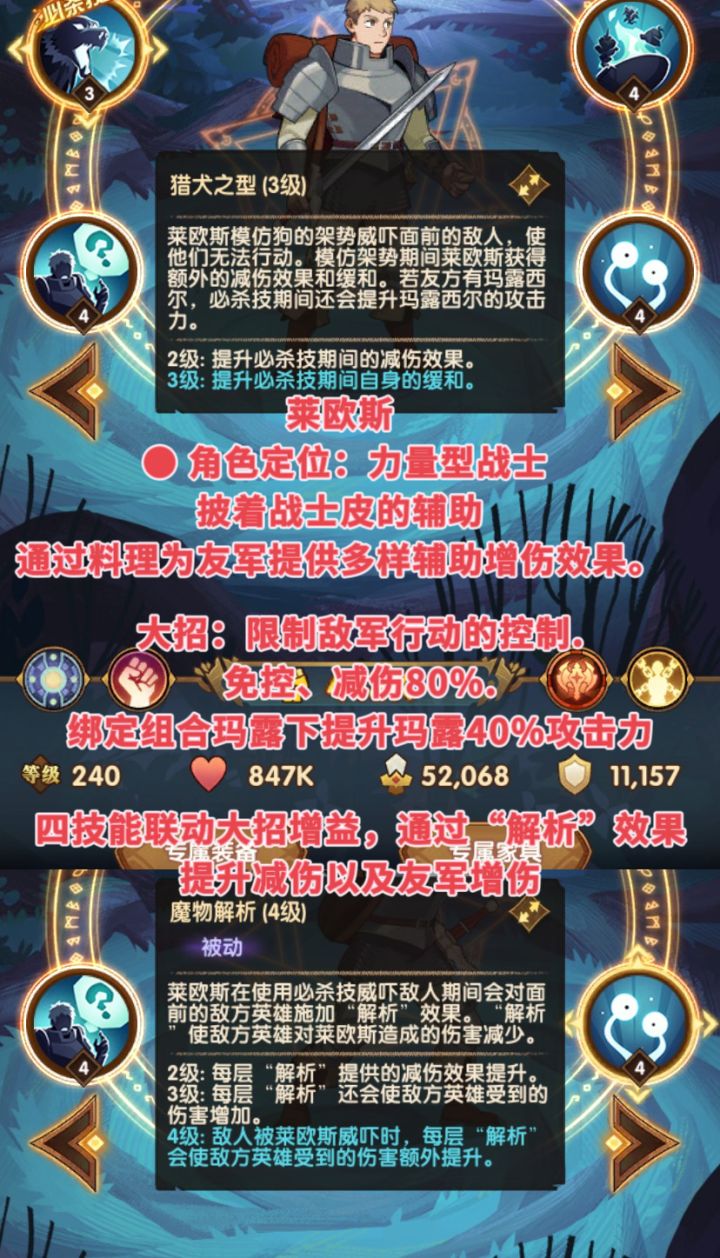玛露西尔&莱欧斯英雄练度培养,技能解析
