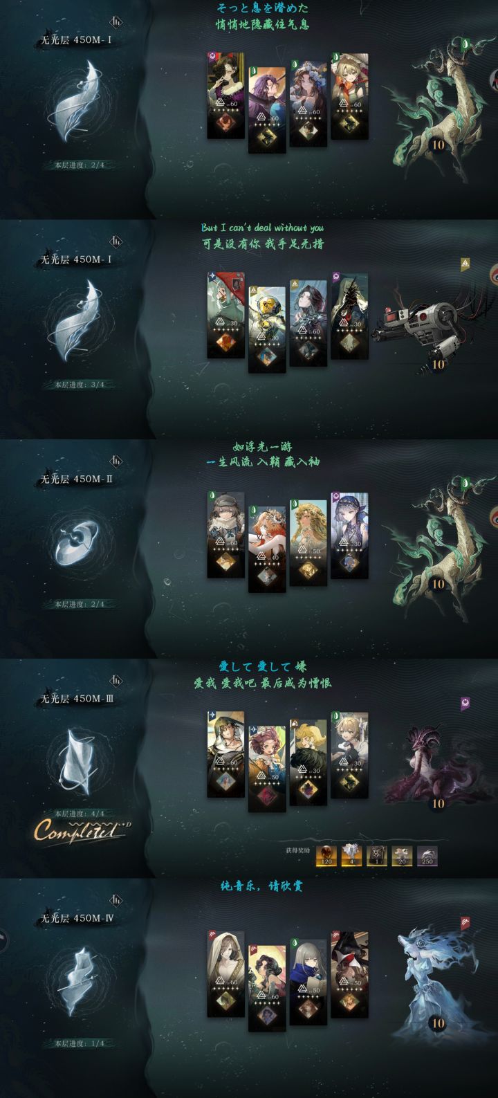 450-4打不过去1用的木启卡,2用的升阶,3用的余辉,4我是真没招了,求求来个大佬给个解法(几天后估计会多出一只8k62)#迷思海 #迷思海450m