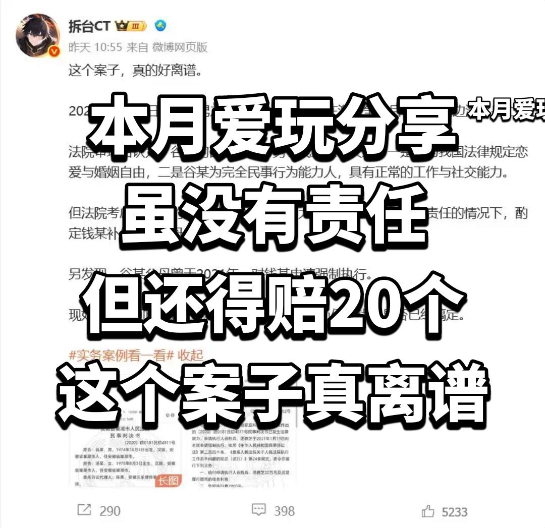 虽没有责任,但还得赔20个,这个案子真离谱