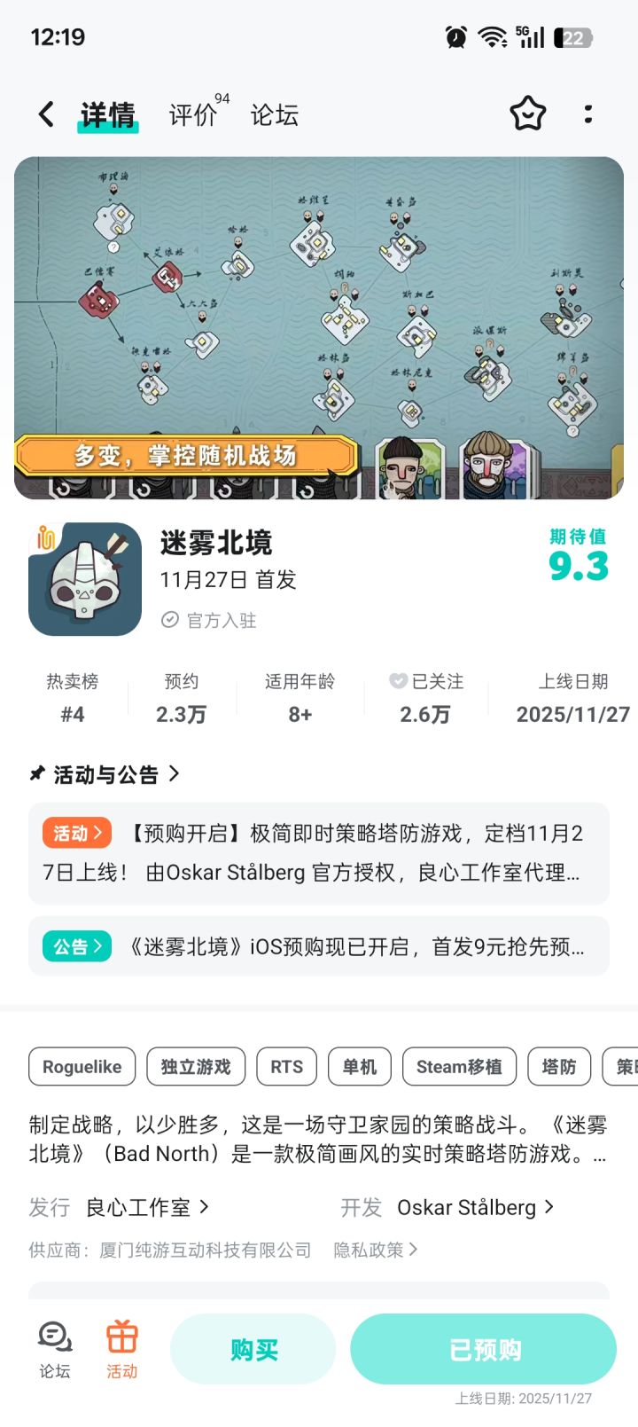 #宝藏游戏安利派对 #迷雾北境 #Roguelike #独立游戏 #RTS #单机 #steam #steam移植 #塔防 #策略手游