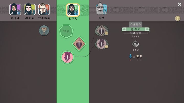 建议优先通关简单模式,解锁特性和装备。之后二周目可以给初始民兵选择特性,方便队伍快速成形。开局站位,离敌方船头一格距离,否则会被击晕。每个兵种优先升满一支队伍,技能可以先解锁,其他队伍2级过渡,后期有钱再升级。前期难度低,装备雅贝娜,尽量一回合打2个岛,快速发育。一、兵种介绍民兵开局自带兵种 建议选择升级双盾兵开局。第三只队伍矛兵,最后攒钱弓兵。优先升满一支盾兵,第二支2级,技能神兵天降