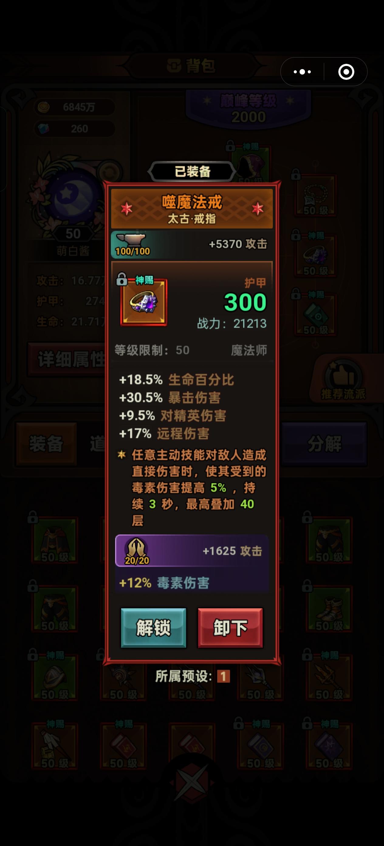 刚玩不久,tap6区菜鸡一枚,结合各位大佬和排行榜自己慢慢摸索,装备还没全远古,巅峰也才1500,继续加油[表情_斜眼笑]#迷雾大陆 #迷雾大陆法师